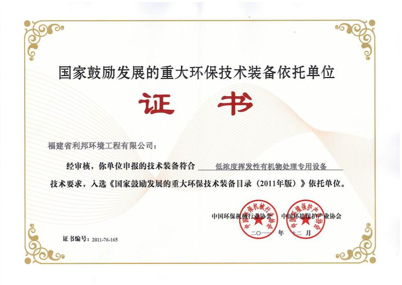 福建省利邦環(huán)境有限公司創建于2006年12月,座落在福建省莆田市涵江區國家級高新技術產業園區,是國家高新技術企業、國家重大環(huán)保裝備依托單位、福建省科技型企業、福建省創新性企業、福建省首批科技小巨人、福建省“專精特新”專業化企業,擁有企業研發(fā)中心、福建省有機廢氣凈化設備工程技術研發(fā)中心;公司產品獲得科技部、環(huán)保部、商務部、國家質量監(jiān)督總局頒發(fā)的“國家重點新產品”證書,“中低濃度揮發(fā)性有機物回收凈化裝備”被列入《國家鼓勵發(fā)展的重大環(huán)保技術裝備目錄(2017年版)》;公司核心發(fā)明專利分別獲得了中國專利獎優(yōu)秀獎、福建省專利獎二等獎等專利獎項,其中兩個核心技術分別獲得福建省技術發(fā)明獎二等獎、福建省科學技術進步獎二等獎;公司通過了ISO9001質量管理體系認證,擁有住建部工程設計資質環(huán)境工程(大氣污染防治工程)專項乙級資質單位,承接大型的環(huán)保工程和環(huán)保設備制造;公司是工業有機廢氣VOCs綜合治理方案提供商,是集技術設備設計研發(fā)、制造、銷售為一體的科技環(huán)保企業。